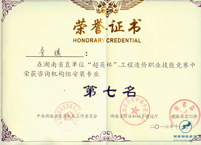 2016年11月28日, 由湖南省直屬機(jī)關(guān)工作委員會(huì)、湖南省住房和城鄉(xiāng)建設(shè)廳、湖南省總工會(huì)聯(lián)合舉辦,湖南省建設(shè)工程造價(jià)管理協(xié)會(huì)承辦的湖南省直首屆“超英杯”工程造價(jià)職業(yè)技能競賽在長沙建筑工程學(xué)校圓滿落幕。
